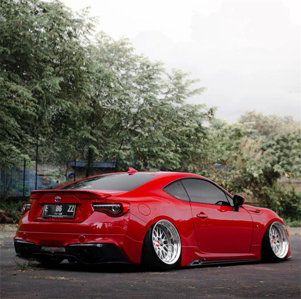 AIRBFTsuspension Air Suspension Modification Website: The outer eight shape Toyota 86 airride is full of personality。Modification is to have ingenious styles and distinctive styles to reflect the uniqueness of your car. The bright red body, the eight-inclination design, and the style of the ground. Yes, today we are going to look at such a personalized modified car, the Toyota 86 from Indonesia modified airbft air suspension attitude case.
